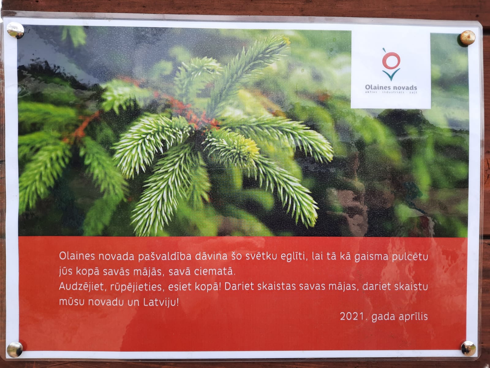 Информируем, что за хорошую работу на субботнике 24.04.2021 г. самоуправление Олайнского района подарило СКО "Целтниекс" праздничную елочку.