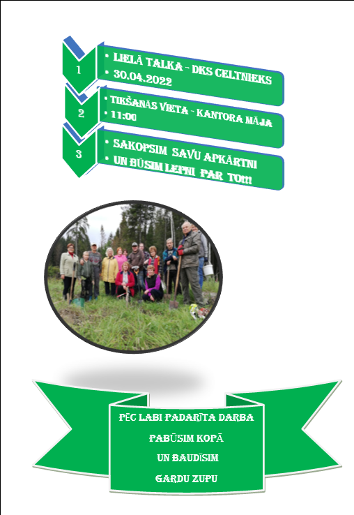 Dodoties talkot, noteikti ņem līdzi darba cimdus, savus ģimenes locekļus, draugus, radus, darba kolēģus, kaimiņus un pats svarīgākais – darba prieku!